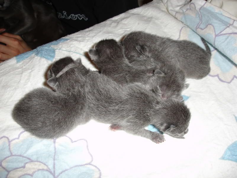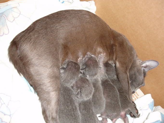Efter en natt med ett fasligt pipande i lådan börjar det bli lugnt. Tre av dem slåss för fullt om de bästa spenarna, de två andra verkar inte så intresserade, men äter under syskonen i lugn och ro. Alla utom den allra största har gått upp runt fem gram var, så det finns ingen anledning till oro.